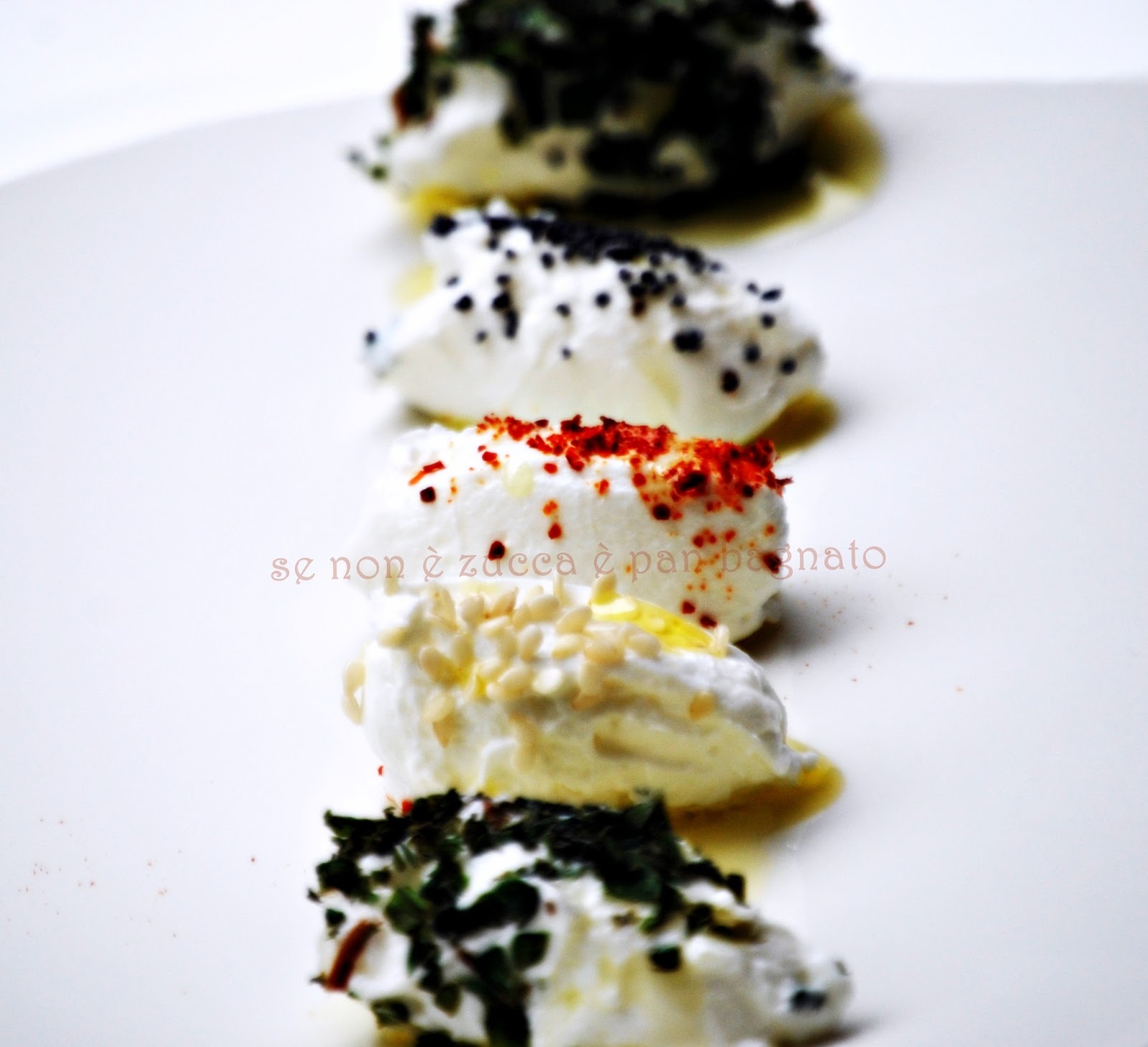 Ero alla ricerca di idee originali per farcire la pizza, e mi sono imbattuta in una ricetta in cui veniva usato un formaggio cremoso, che, a quanto si diceva, poteva essere preparato in casa senza l'aggiunta di caglio o fermenti, semplicemente utilizzando lo yogurt. E' un tipo formaggio che acquisto raramente, perché la scadenza particolarmente lunga indica una necessaria presenza di conservanti che preferisco evitare. L'idea di poterlo realizzare in casa, consumandolo ovviamente in breve tempo, mi ha quindi subito tentata, anche se ero abbastanza scettica e già pronta ad un possibile flop. Il risultato è invece stato sorprendente: un formaggio morbidissimo dal sapore acidulo, ottimo da spalmare su un crostino e da servire come fresco antipasto.