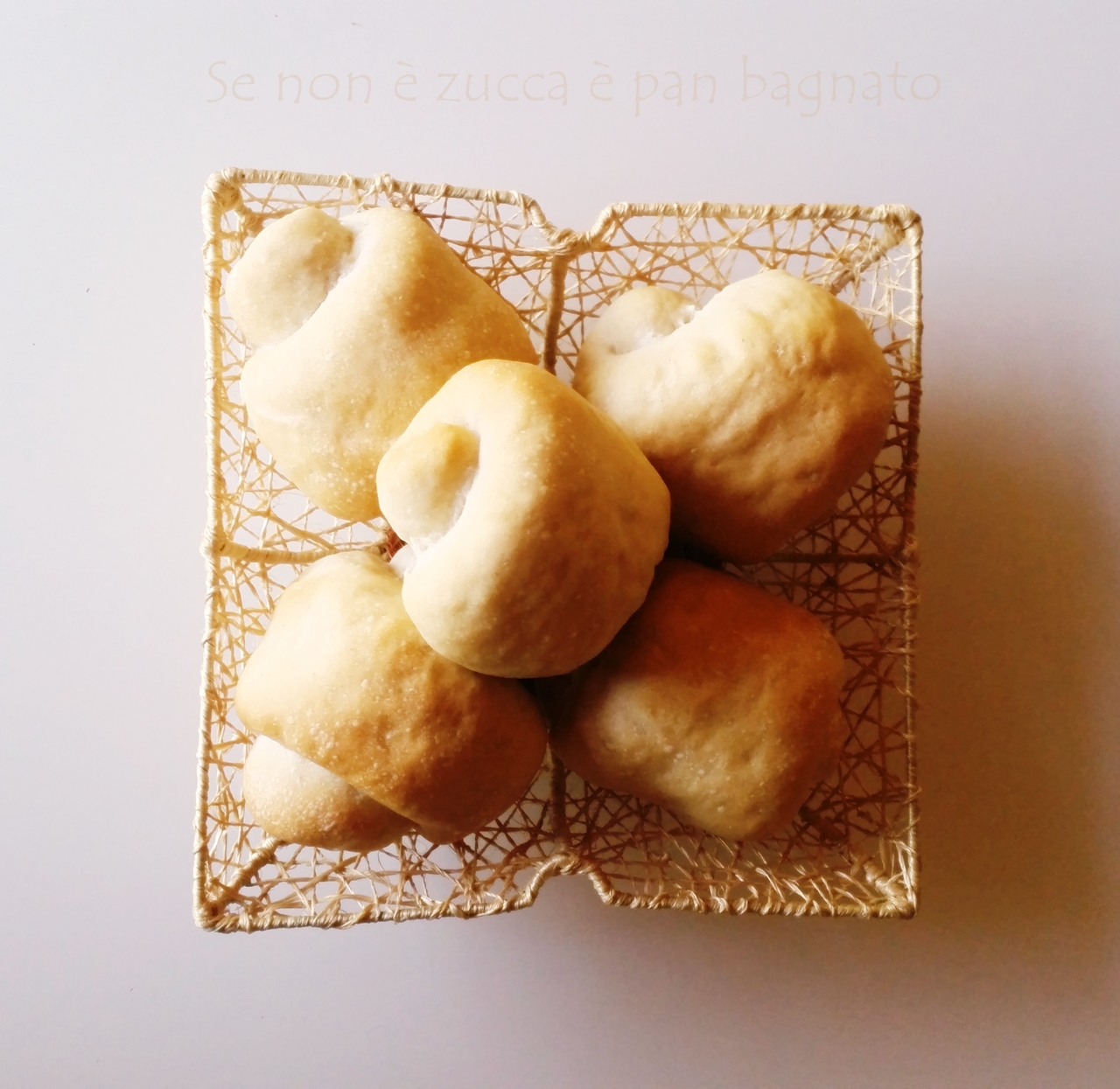 Dopo un periodo di caldo anomalo le temperature sono tornate accettabili, ed ho finalmente potuto riaccendere il forno; è' stata l'occasione giusta per tornare ad impastare: da tempo non utilizzavo il mio lievito madre, e devo dire che mi mancava...Sentire l'impasto che si forma tra le mani è una sensazione davvero gratificante, un antistress naturale! I bimbi non amano le pagnottone rustiche, per loro la crosta è troppo croccante...E così ho pensato di accontentarli preparando dei